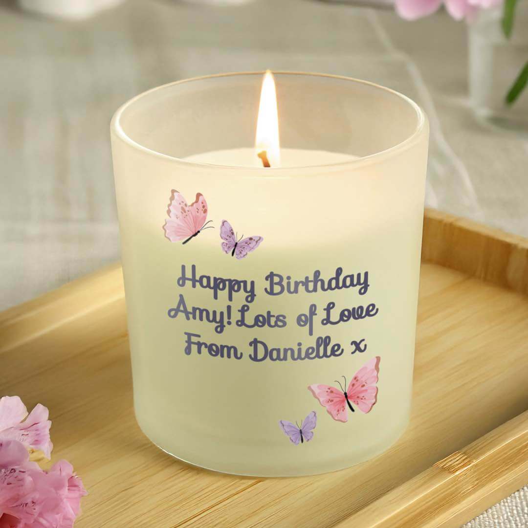 A beautiful sentimental candle featuring a sweet butterfly design is an ideal gift for a special someone.